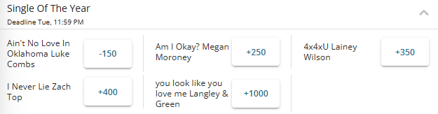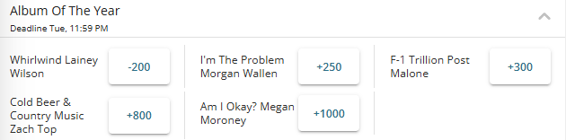 Let’s have a look at the betting lines for some of the 2025 CMA Award categories. The odds below are from BetOnline.ag are accurate as of November 13th – less than a week before the Awards show.