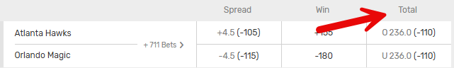 The over/under in the Magic vs Hawks game is set at 236 points. If 237 or more points are scored then the over bets would be winners, while if 235 or fewer points are scored the under bets would be winners. If exactly 236 points are scored in the game bets on the total would push and be returned.